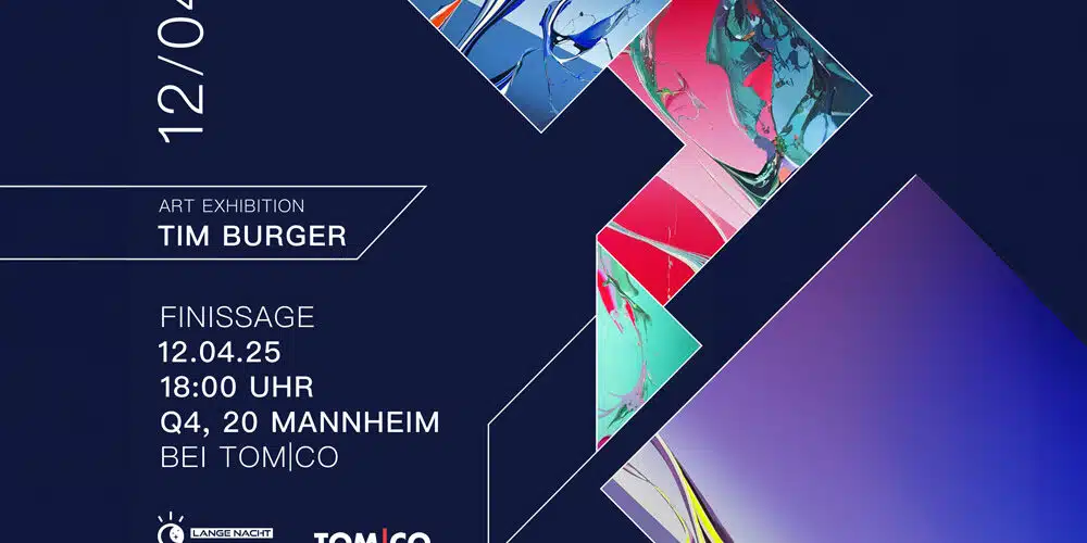 Allgemein, Mannheim Q4Am 12. April von 18.00 bis 23.00 Uhr lädt der junge Mannheimer Künstler Tim Burger gemeinsam mit Thomas Mück, Inhaber von TOMCO Friseure, zur Finissage seiner Ausstellung in Q4/20 Mannheim ein. Der Salon wird für einen Abend zur stilvoll...