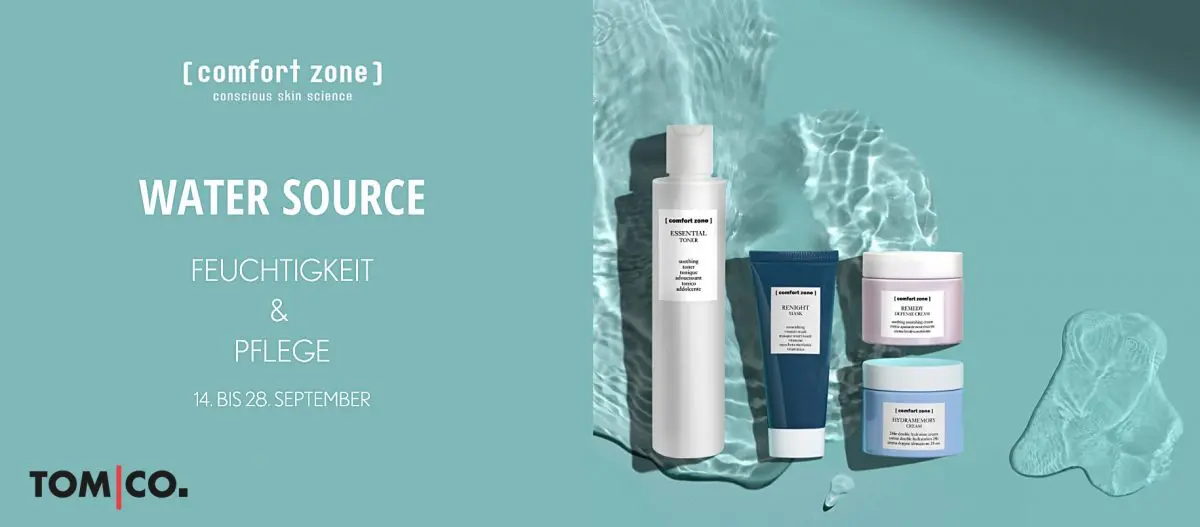 Der Herbst und der Spätsommer bringen besondere Herausforderungen für Deine Haut, bei deren Bewältigung wir durch pflegende Produkte und effektive Behandlungen gerne helfen wollen. Daher nehmen wir an der Water Source Aktion von [ comfort zone ] teil: Vom 14. bis zum 28. September gibt es bei uns besondere Rabatte und Angebote für feuchtigkeitsspendende Behandlungen und Hautpflege-Pakete.