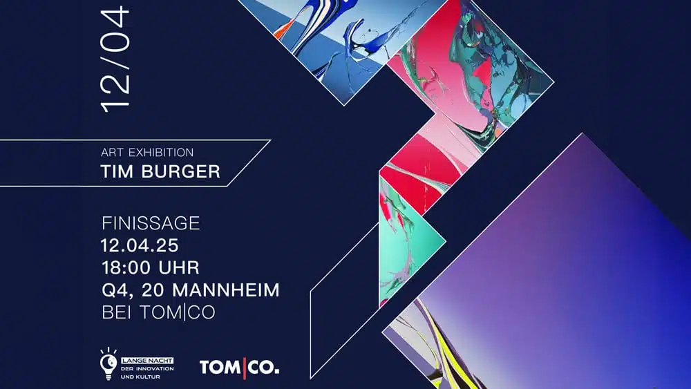 Am 12. April von 18.00 bis 23.00 Uhr lädt der junge Mannheimer Künstler Tim Burger gemeinsam mit Thomas Mück, Inhaber von TOMCO Friseure, zur Finissage seiner Ausstellung in Q4/20 Mannheim ein. Der Salon wird für einen Abend zur stilvollen Galerie und bietet Raum für Burgers Werke sowie die besondere Atmosphäre ihres Entstehens. Besucherinnen und Besucher erwartet außerdem elektronische Live-Musik des …
